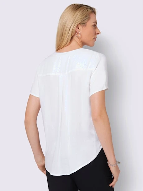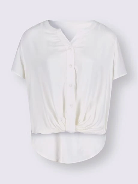 Chemisier tendance. Ourlet décoratif entrelacé pour un effet cache-cœur fixe. Coupe décontractée facile à enfiler avec encolure ronde, V ouvert et patte de boutonnage, empiècement au dos avec pli large. Coupe longue au dos avec ourlet arrondi.