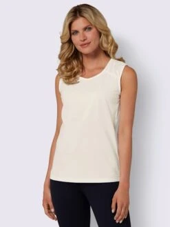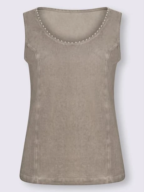 Débardeur à effet délavé tendance avec larges bretelles. Encolure ronde avec rivets et coutures princesse. Mélange de coton léger. Soutient l’initiative « Cotton made in Africa ».