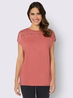 T-shirt à Encolure Ronde Empiècement Dentelle Devant Et Derrière