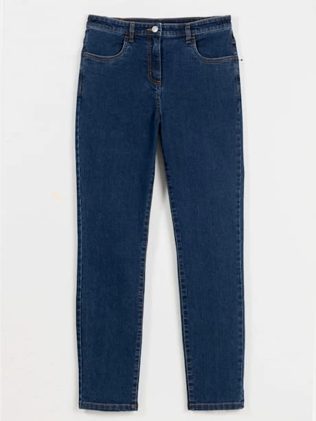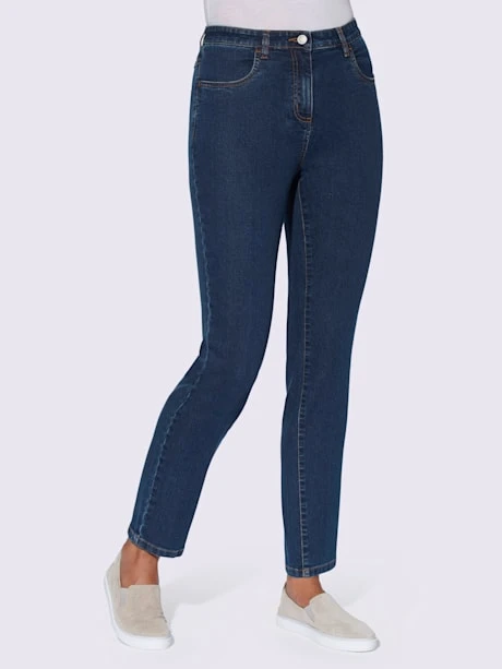 Une association 100% agréable : au quotidien, on aime se glisser dans ce jean. Empiècement en maille pour un ventre visuellement plus plat. Ceinture élastiquée latérale avec passant de ceinture, fermeture boutonnée et à glissière. Coupe 4 poches. Empiècement au dos pour une tenue parfaite. Repassage superflu : lavez, séchez et remettez-le tout de suite ! Largeur bas env. 34 cm.