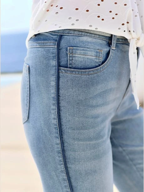 Jean Slim Délavé Taille Haute Bandes Côtés