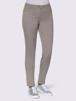 Grâce à la qualité twill, ce pantalon extensible vous séduira par son confort et son aspect tendance. Magnifiques rayures galon. Ceinture fixe et passants, fermeture à glissière et bouton. 4 poches. Empiècement. Repassage superflu : lavez, séchez, portez tout de suite ! Largeur pieds env. 32 cm.