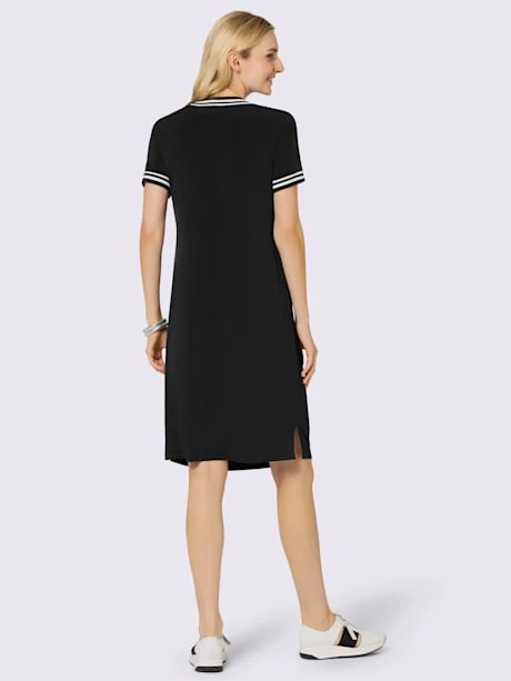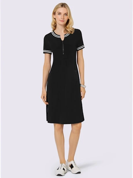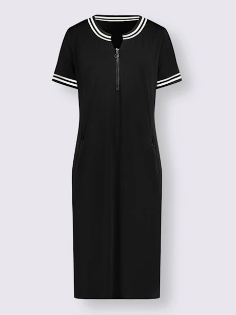 Le favori de toute garde-robe : la robe en jersey confortable et facile à assortir. Encolure ronde avec bande côtelée rayée et glissière courte. 2 poches à glissière pratiques devant et fentes latérales.