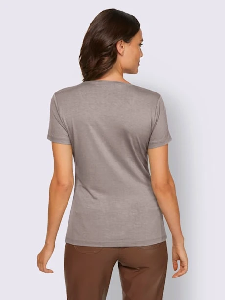 T-shirt à encolure ronde, pour le travail et les loisirs. Empiècement mousseline à l’encolure. Manches courtes, encolure ronde. Matière légère et agréable.
