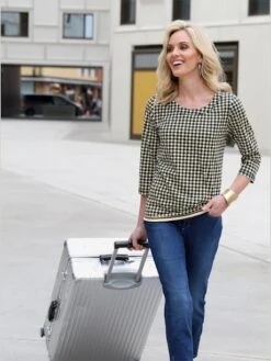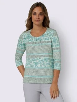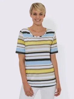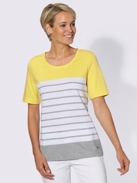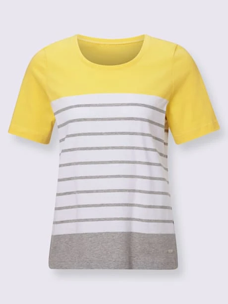 T-shirt avec empiècement rayé devant et au dos. Entretien facile et agréable à porter.