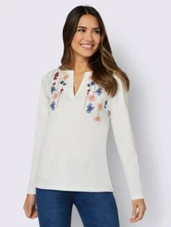T-shirt à manches 3/4 avec magnifique motif imprimé. Plis flatteurs sous l’encolure ronde pour un tombé fluide.