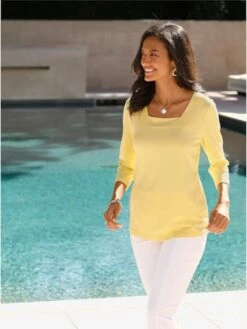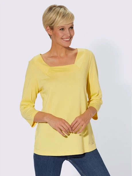 Facile à associer : T-shirt en coton souple et agréable à porter. Encolure carrée et manches 3/4. Avec cet achat, vous soutenez l’initiative « Cotton made in Africa ».