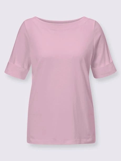Qualité jersey fin incroyablement agréable à porter et facile à entretenir ! T-shirt à encolure en U féminine. Manches courtes à revers fixe très tendance. Fentes latérales pour plus de confort.