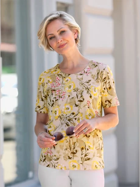 T-shirt pur coton imprimé. Encolure ronde et manches courtes.