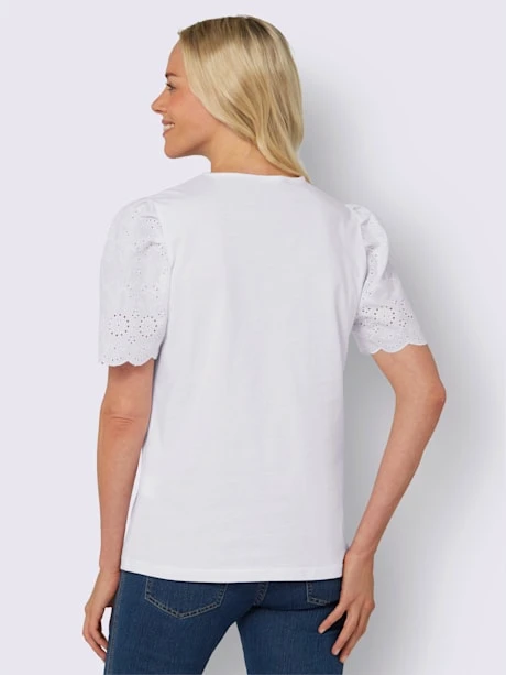 T-shirt à Manches Courtes Superbe Broderie Ajourée