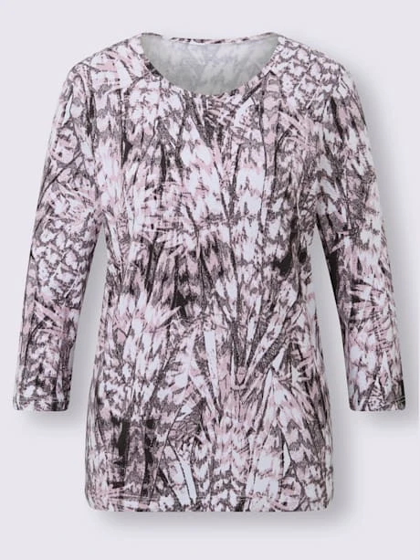 T-shirt à imprimé intégral en qualité viscose douce et fluide. Encolure ronde et manches 3/4. Finitions droites.