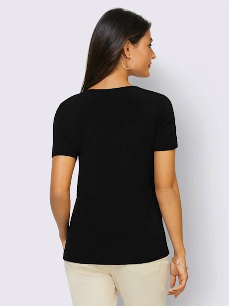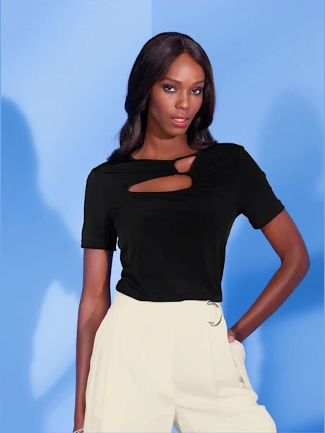 Fascine en toutes occasions et mĂŞme au bureau : T-shirt Ă l’encolure extravagante. DĂ©coupes tendance et passepoil mode pour attirer tous les regards. Manches courtes.